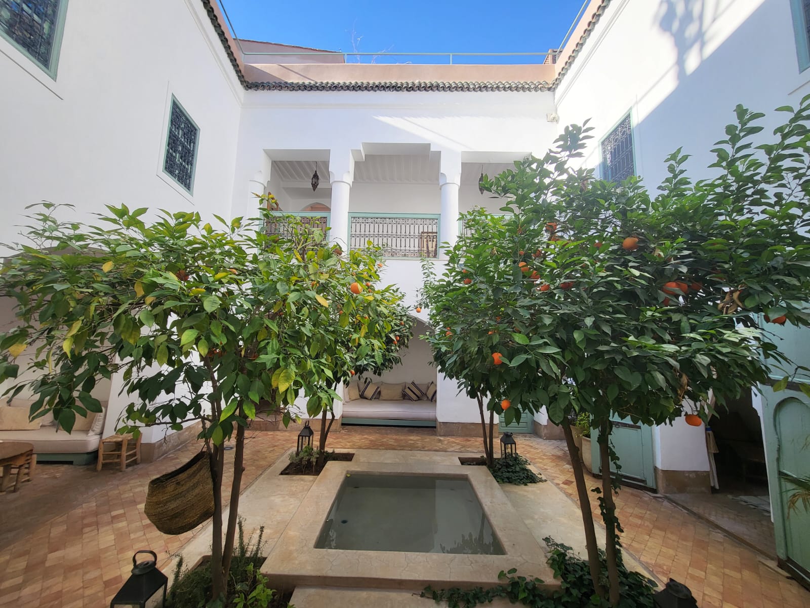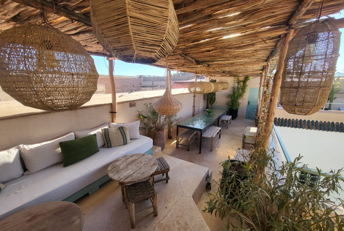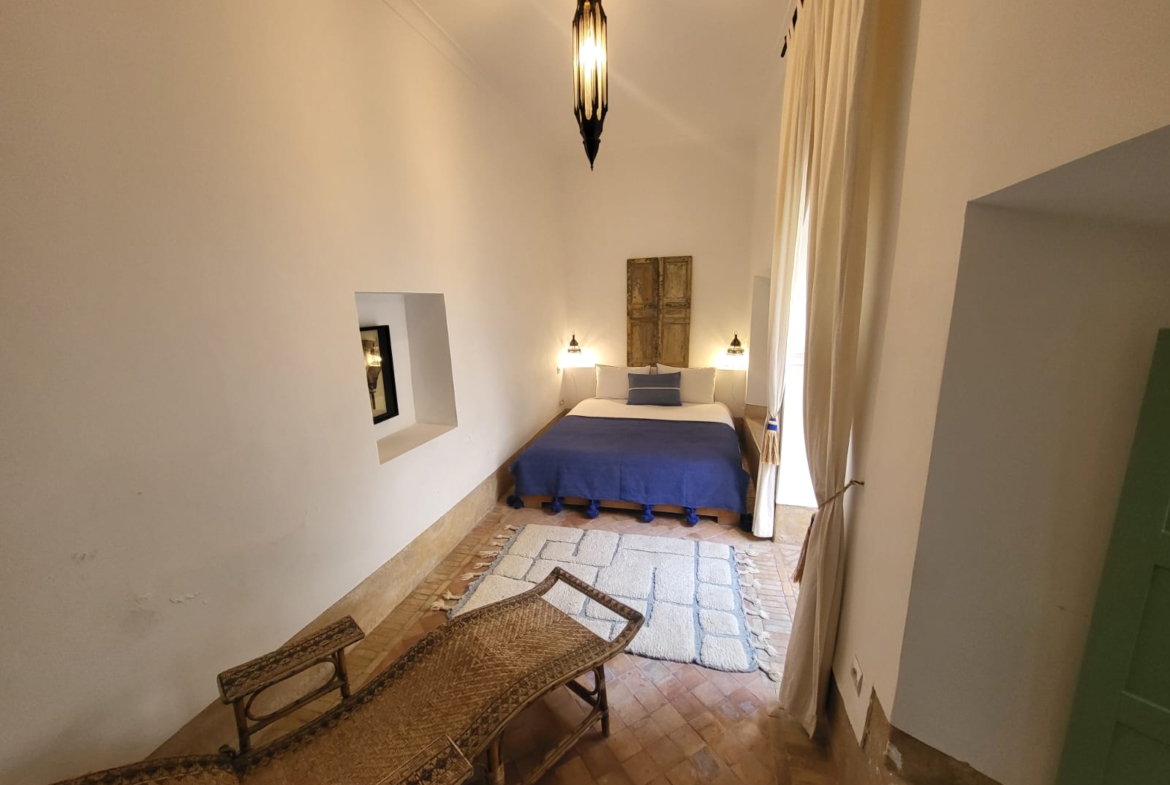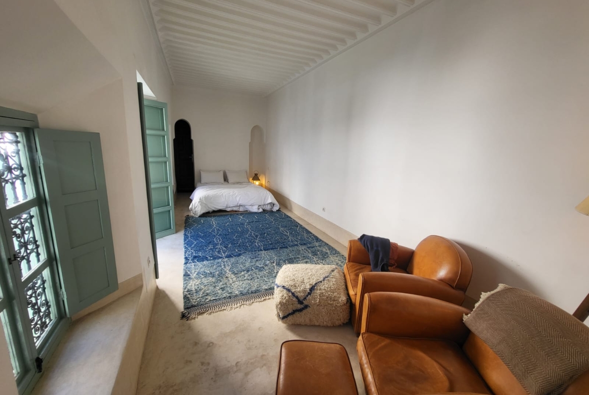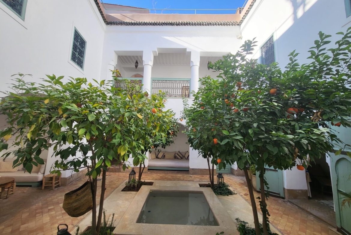 Classic Luxury Riad For Sale in Marrakech. This spectacular Riad designed by renowned architect Quentin Wilbaux is a traditional Riad-lovers’ dream. With 5 stunning, spacious suites, a pretty central courtyard with a small pool and verdant trees, and a second, heated pool on the gorgeous rooftop, it is no surprise that this Riad is highly profitable on AirBnb.