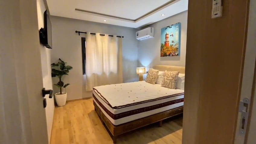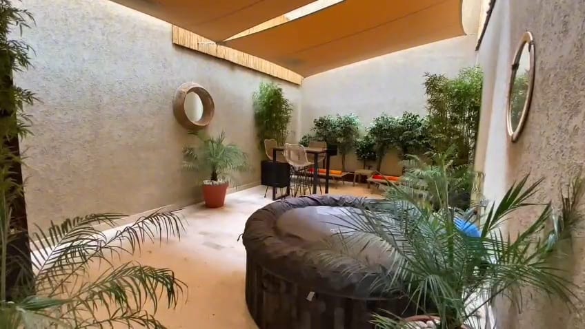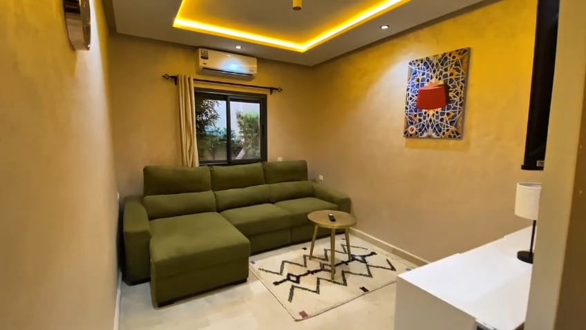Two Bedroom Duplex Apartment For Sale in Marrakech. Located in quiet, chic Semlalia, within walking distance of Gueliz, with a garden, underground parking, air conditioning, a communal pool – every box is ticked.